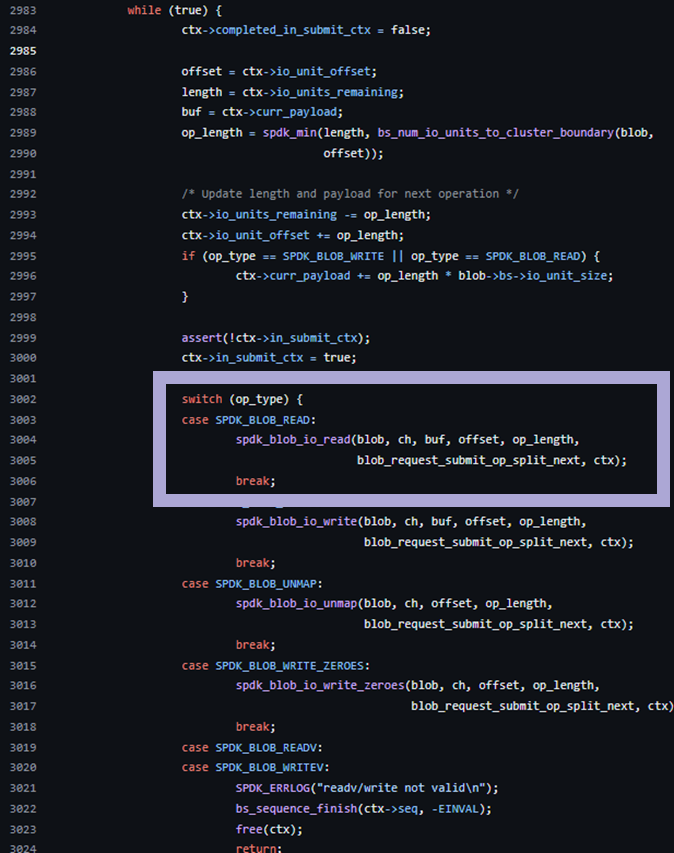blobfs/blobstore layer에서는 blobstore 기반으로 blobfs가 동작하기 때문에