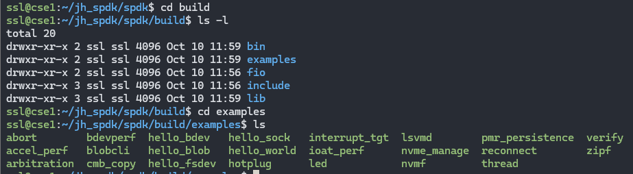 나는 spdk에서 제공하는 예제를 확인할 계획이었으니 build에서 examples 로 이동한다