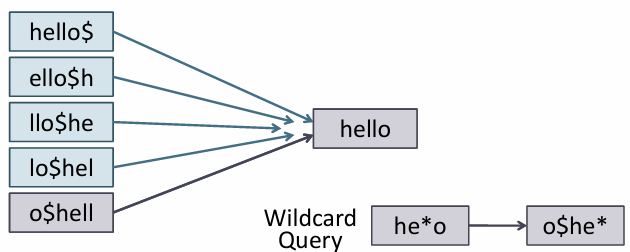 - 각 단어를 여러 가지 형태로 회전시킨 후 와일드카드 쿼리를 효율적으로 처리