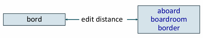 - 잘못 인풋된 단어에 대해 대체할 모든 후보군을 제시하는 것(모든 단어와 편집거리 비교 후 제시)은 비용 소모가 큼