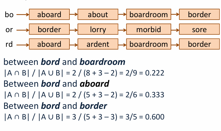 * k-gram overlap 정규화 > jaccard 계수를 이용하는