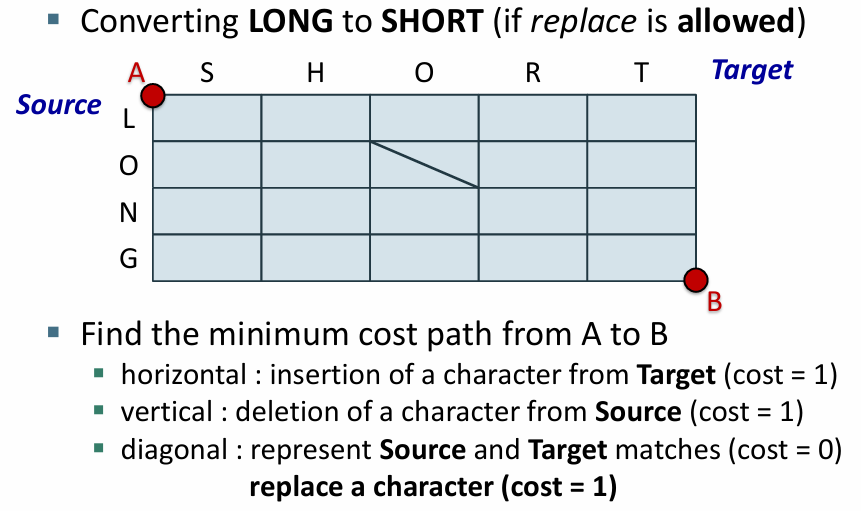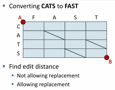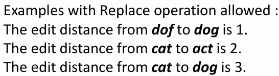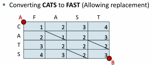 - 기본적인 편집 거리에서는 삽입과 삭제, 대체 동일한 비용을 가짐