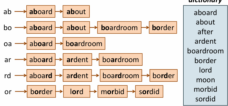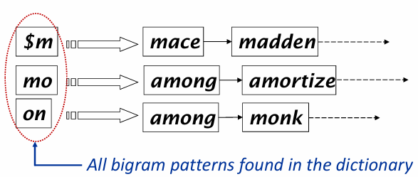 - k그램을 인덱스에 저장해서 특정 쿼리를 빠르게 처리할 수 있음