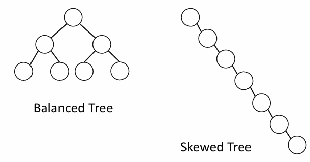 skewed tree 편향 트리. 노드가 한쪽으로 치우쳐있음. 검색 성능 나쁨