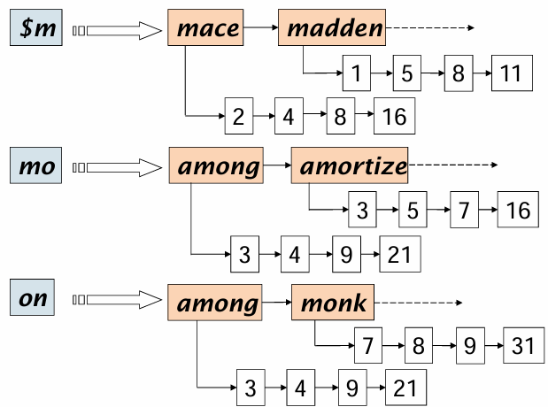 - 철자 변형 처리가 쉬움 :: 유사한 단어는 인접하게 배치됨