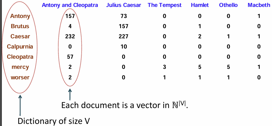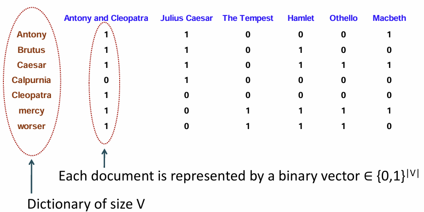 * Binary Term-Document Incidence Matrix : 이진 텀 문서 발생 행렬