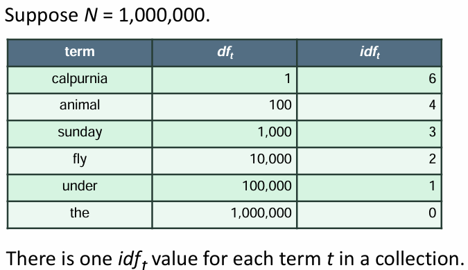 - 흔하지 않은 단어가 사용된 쿼리는 그 단어를 포함한 문서왁 관련되었을 가능성이 높음