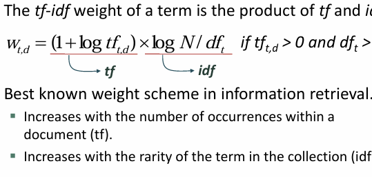- 쿼리 텀이 문서 안에 자주 등장할수록 점수 높아짐 = 빈도 높은 것이 관련성 높은 것