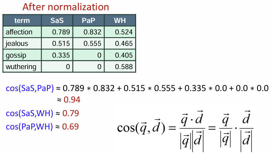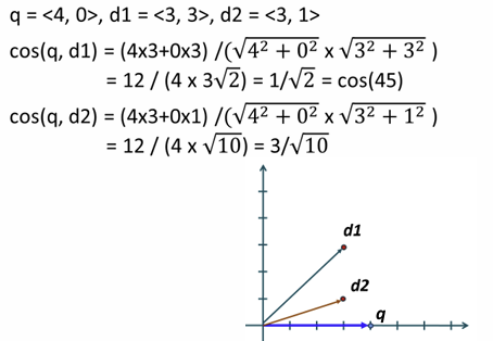 - 문서와 쿼리의 일치도 , 간단한 유사도 계산