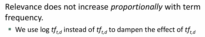 용어 빈도 tf 의 증가와 쿼리문 관련성의 증가는 비례하지 않음