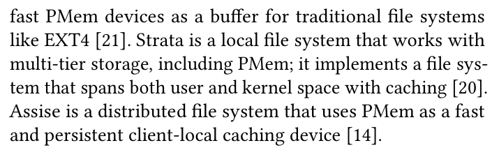 strata는 pmem을 포함한 멀티 티어 스토리지와 함께 작동하는 로컬 파일 시스템으로 유저 스페이스와 커널 스페이스 모두에 캐싱을 적용한 파일 시스템을 구현한다.