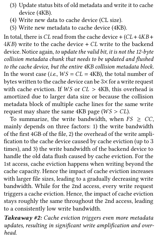 ws = cl = 4kb인 최악의 경우에는 캐시 제거가 포함된 쓰기 요청에서 캐시 장치에 기록되는 총 바이트 수가 데이터 양의 최대 3배가 될 수 있다.
