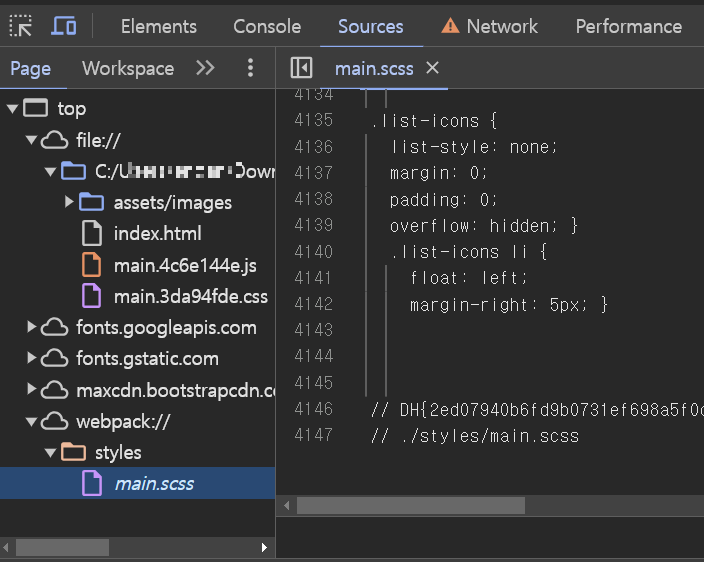 webpack:// - styles - main.scss 코드의 최하단에 플래그가 주석처리로 적혀있다